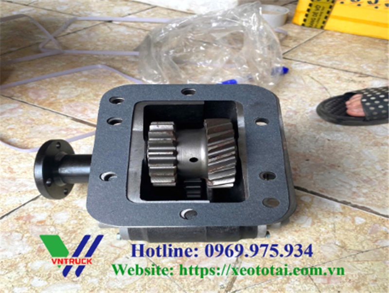 Hộp số lai bơm nước là bộ phận quan trọng của xe tưới nước, nó có tên gọi khác là cóc ben xe rửa đường có chức năng trích công suất từ động cơ để chuyển động cho bơm nước, Có 23 răng thẳng và 25 răng chéo. Nhờ có lái bơm, bơm nước sẽ hoạt động để hút nước nguồn và phun ra để tưới cây hoặc rửa đường.