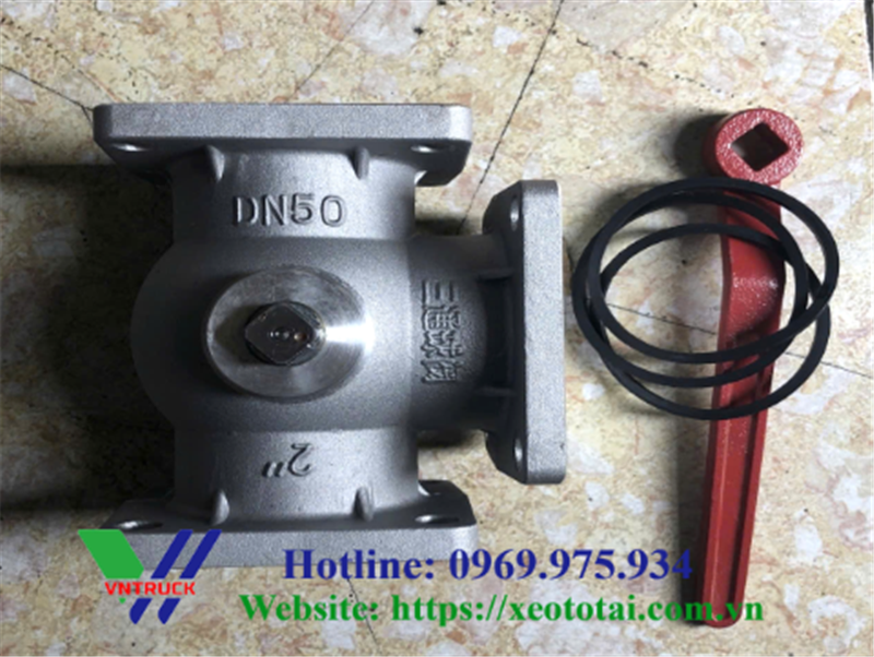 Van 3 ngả DN50 xe phun nước rửa đường hay còn gọi là van 3 cửa xe tưới cây. Van có các kích thước khác nhau như: DN50, DN65, DN80 phù hợp lắp đặt cho các dòng xe tưới nước trên thị trường hiện nay. Van được lắp cho xe tưới nước nhằm mục đích đóng mở đường nước, thay đổi chiều hút xả nước.